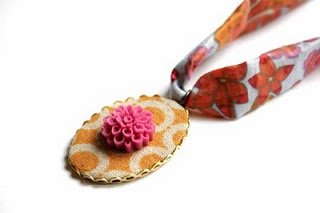 Narancssárga textilkör, kis türkiz gyönggyel.
