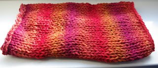 Elkészült a színátmenetes fonalak egy újabb példánya, a piros-vörös-bíbor-lila-narancs változat is csősálként végezte, csakúgy, mint az előző.