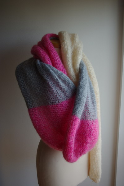 El sem hiszem, hogy leláncoltam az utolsó szemet is. Egy ismerősömnek harmadjára készítettem gigantikus sálat. 6 méter hosszú és 40 cm széles. Komoly és hosszú harc volt ez, minden egyes szemmel megküzdöttem külön-külön. Volt már egy kék óriásom és egy natúr, szúrós gyapjúból készülő is. Azt hiszem legközelebb inkább egy takarót kötök, ha ekkora szemszámra támad kedvem.
